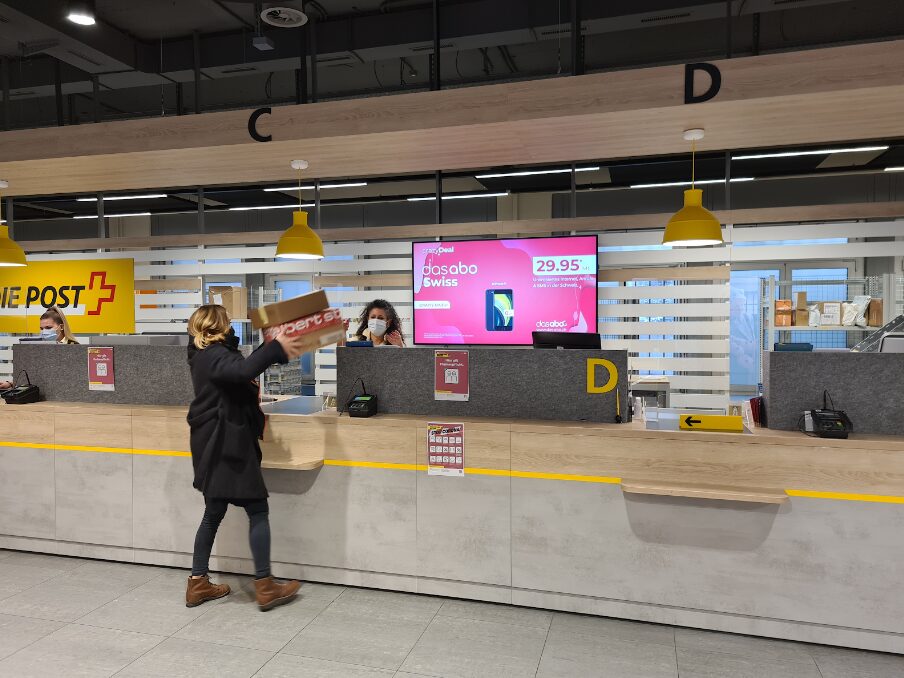An über 400 der meist frequentierten Poststellen der Schweiz befinden sich im Wartebereich gut sichtbare Full-HD-Bildschirme. Diese werden bespielt mit News, Unterhaltung – und vielleicht schon bald Ihrer Werbung.