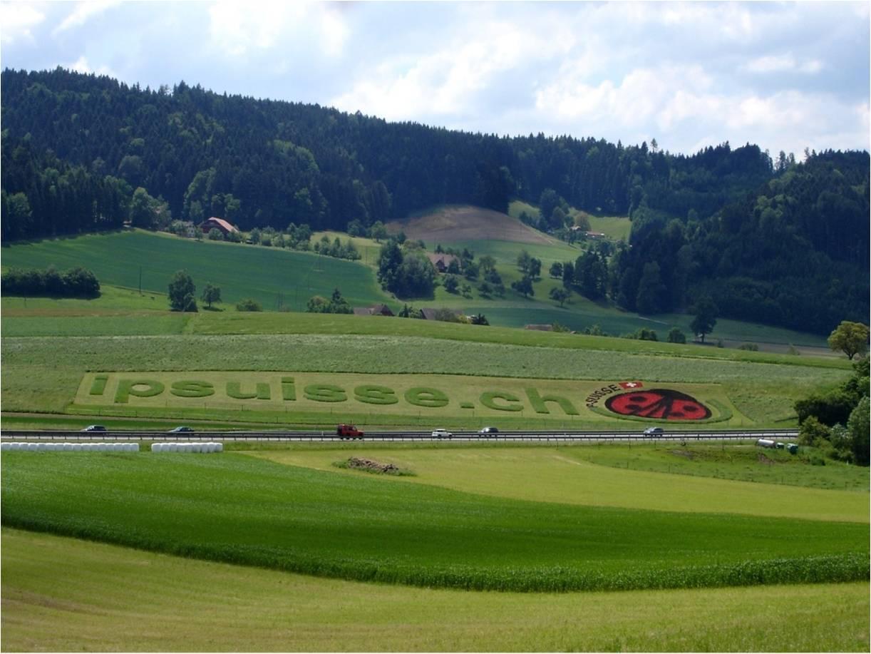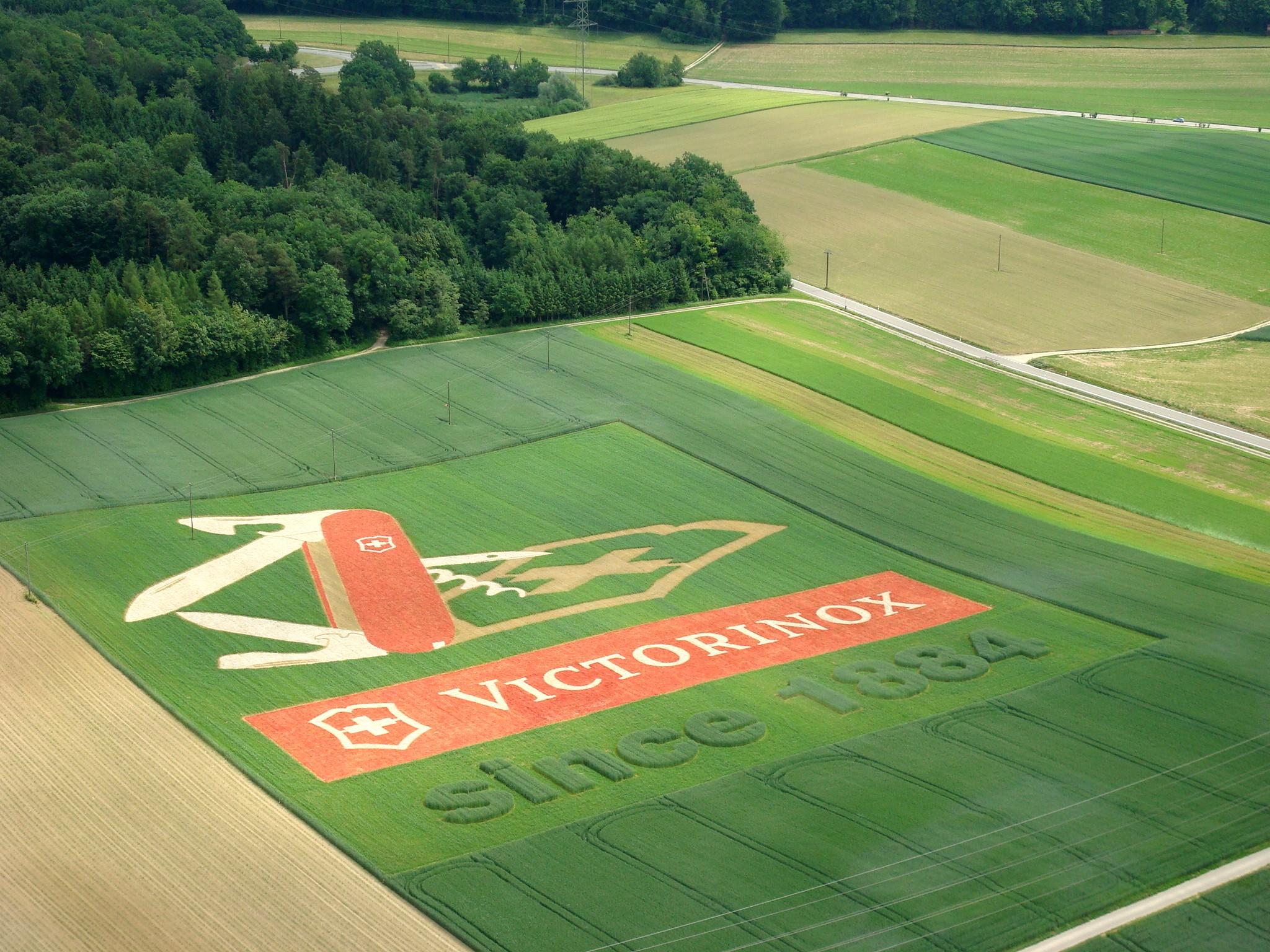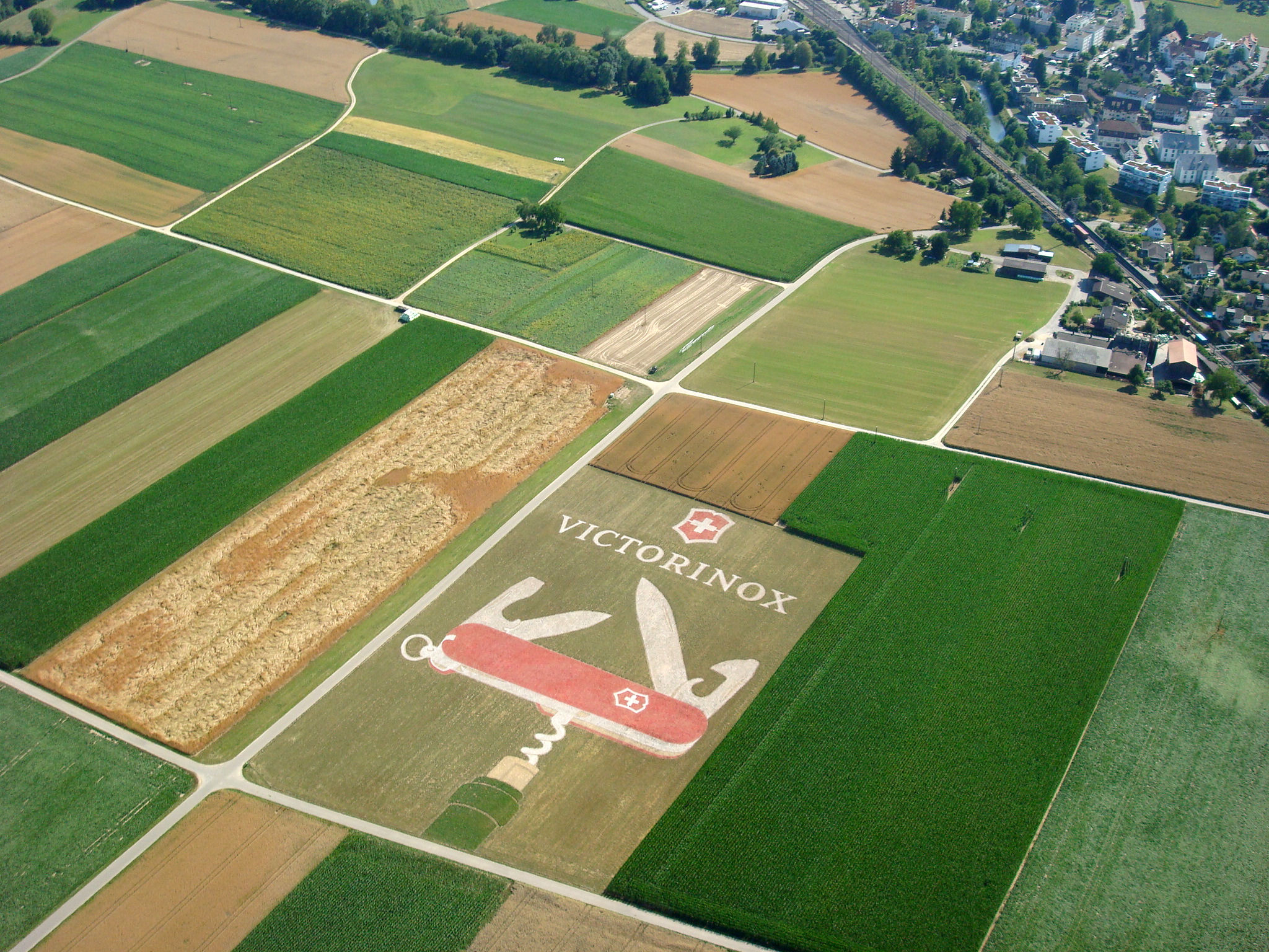 Jetzt wird geackert! Ihr Schriftzug, Firmennamen oder Company Logo lässt unsere Ideen spriessen und blüht auf dank dieser vielseitig einsetzbaren Feldwerbung. Durch unterschiedlich gemähtes Gras, biologisch eingefärbte Holzspäne oder gezielt bunte Bepflanzungen wird das Ackerland nach Ihren Wünschen gestaltet. Die Felder befinden sich an Hanglage oder anderweitig gut sichtbaren Stellen. Im Verlauf der Saison (ca. von Mai bis Oktober) und den damit einhergehenden Naturveränderungen wird das Motiv wöchentlich aufgefrischt. Also keine Bange – diese Aktion wächst uns nicht über den Kopf.